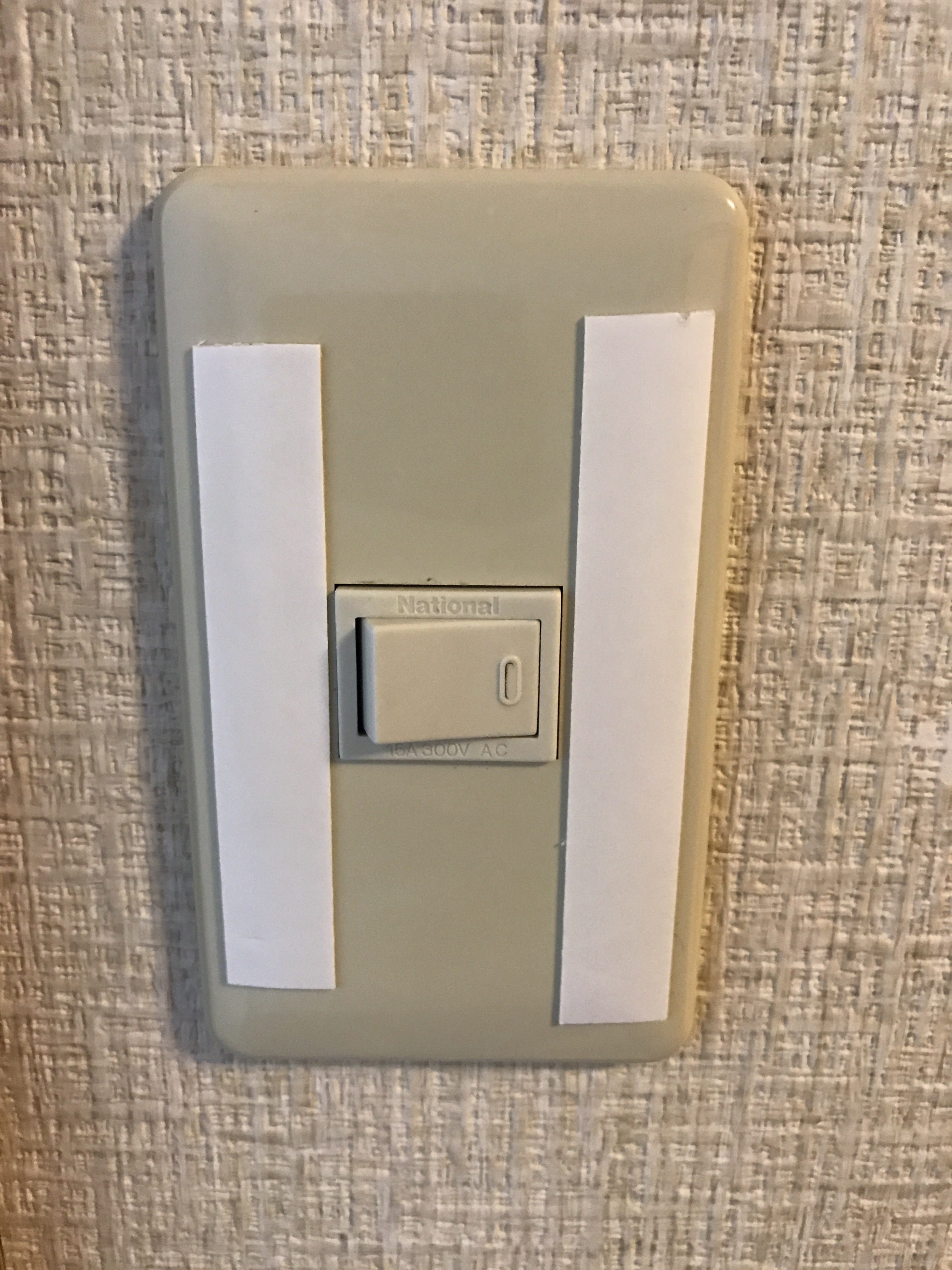 下図のようにスイッチの左右にある程度の長さで貼り付けます。
