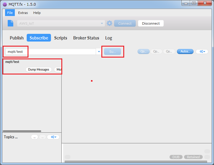 すると以下のように画面が変わり、MQTT.fx での受信体制が整いました。