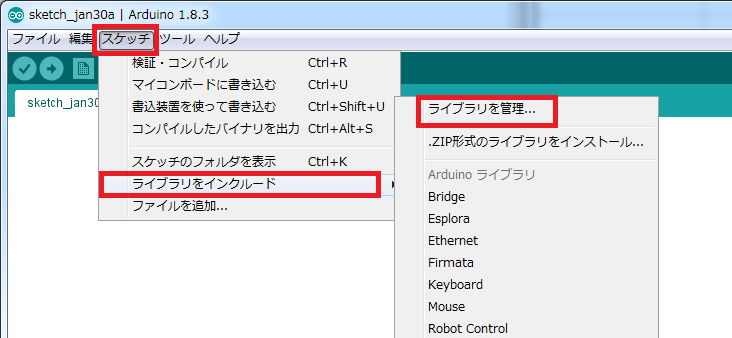 これで Arduino IDE へのライブラリインストールが完了です。