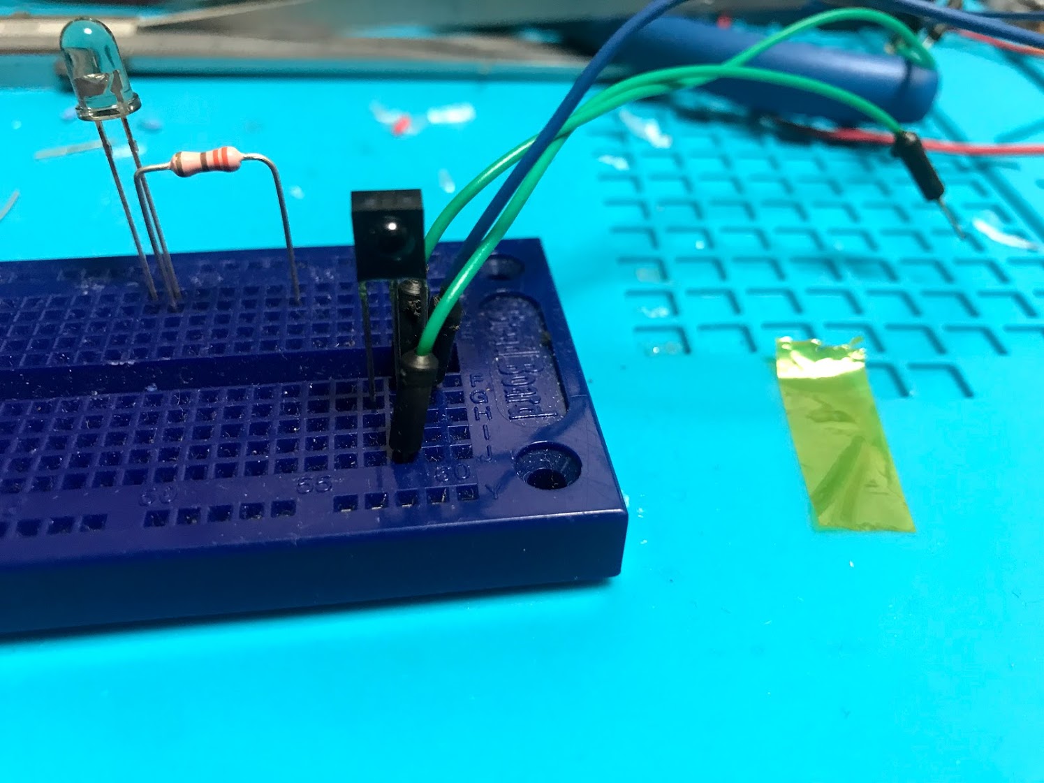 赤外線LED(送信用だけど)に直接リモコン信号を当てて(僅かに発生する起電力を)オシロで確認し、キャリア周波数まで完全一致させるも、動作せず、、、、