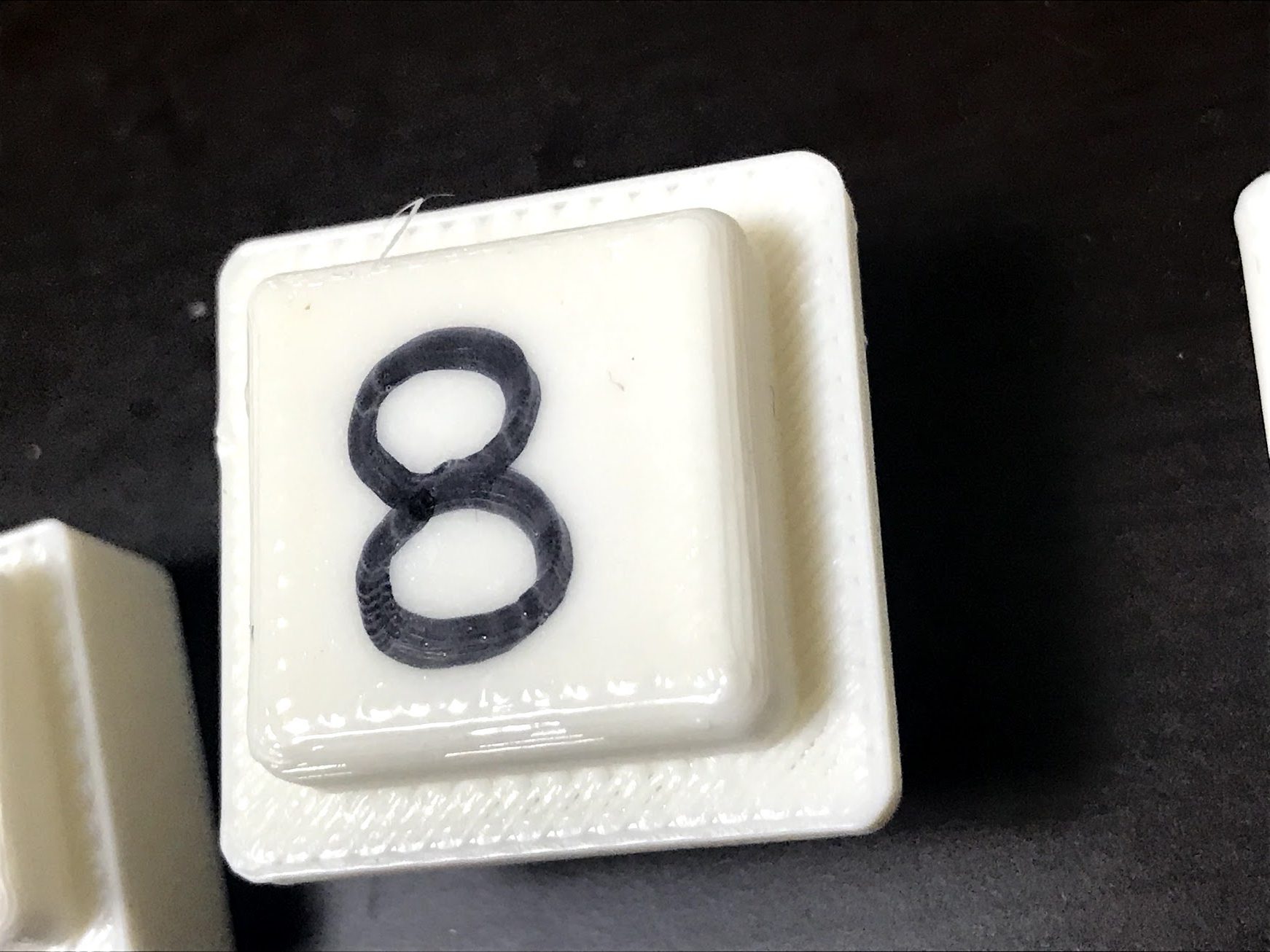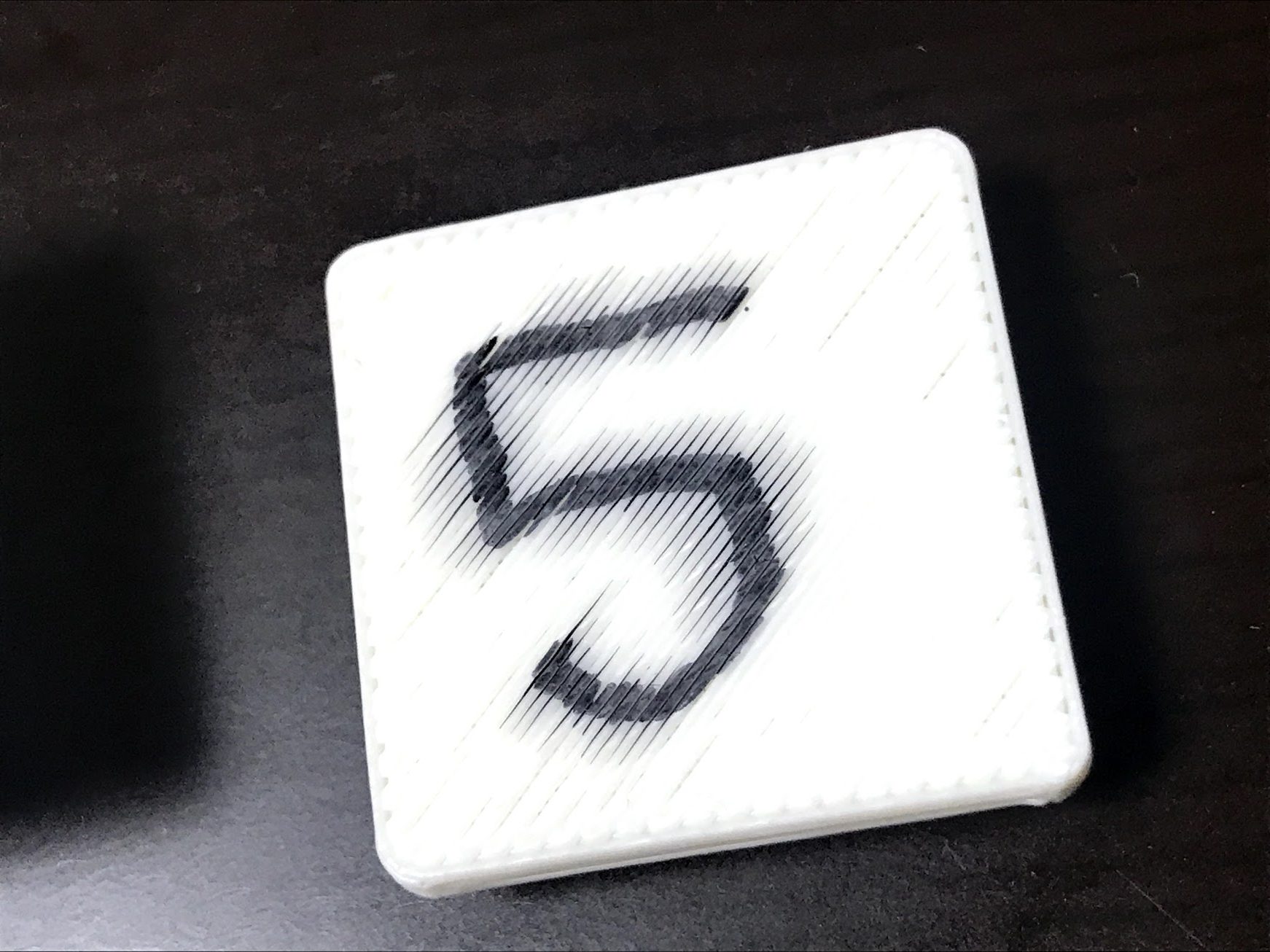 3Dプリンタ出力物は直接文字を書くとこのように滲んでしまうため、アセトン処理をしました。