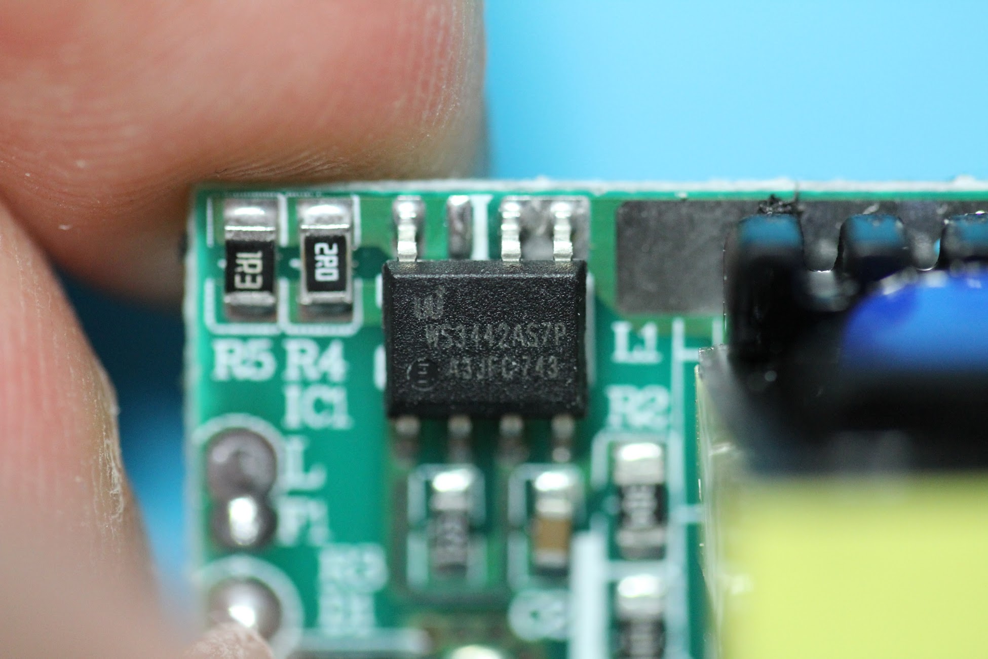 次にICを見てみます。 小さくて見にくいですが、 WS3442 と書かれているようです。