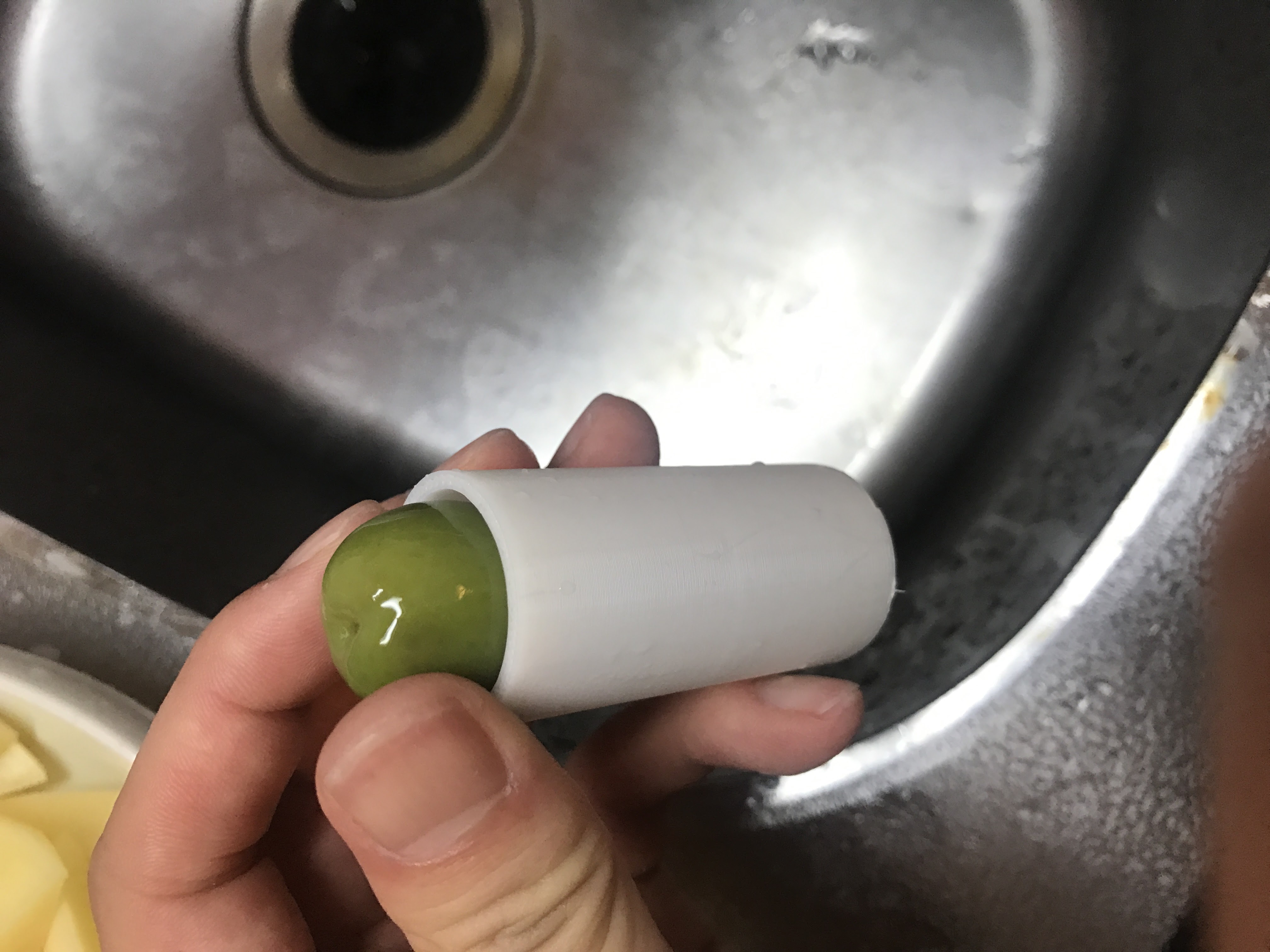 コストコに売っているオリーブの実の種を取る冶具を3Dプリンタで作ってみたので紹介します。